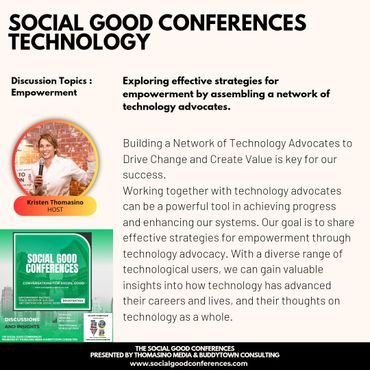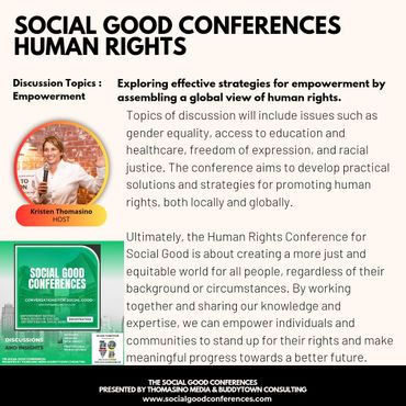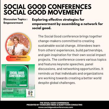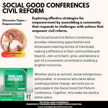 At Social Good Conferences presented by Thomasino Media & Buddytown Consulting, we aim to provide a platform for business leaders to come together and share their insights and Social Good Conferences presented by Thomasino Media & Buddytown Consulting offer a platform for business leaders to share their insights and experiences. Our goal is to inspire and empower attendees to take their businesses to the next level, ultimately contributing towards civil reform.