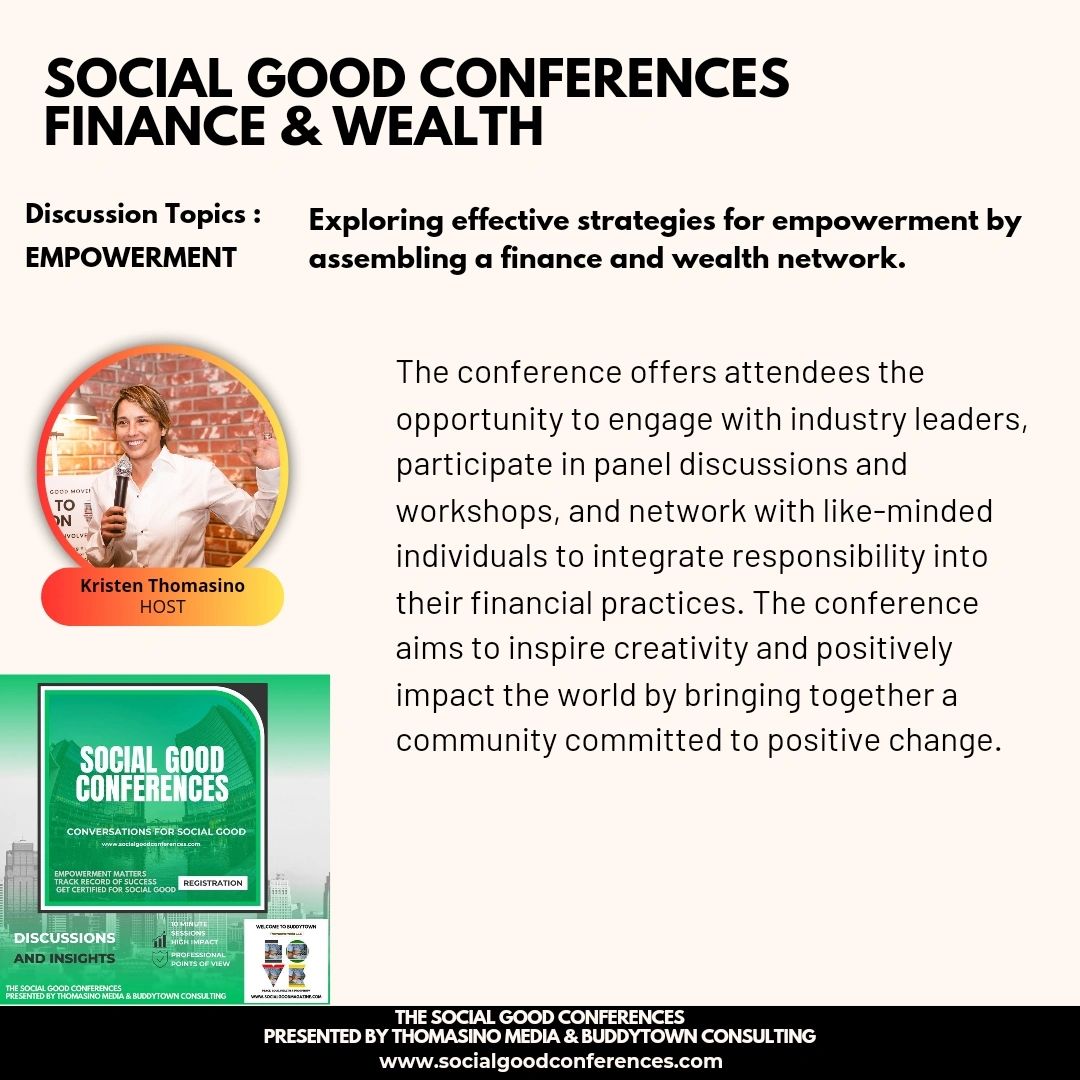 Welcome to the Social Good Conferences presented by Thomasino Media & Buddytown Consulting Conference, where you'll discover the latest trends and strategies in business. Join us for inspiring keynote session, engaging speakers, and an opportunity to network with other leaders.